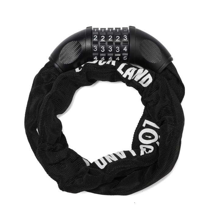 Замок навесной велосипедный LOCKLAND, кодовый, 6 х 1000 мм, цепь, цвет черный