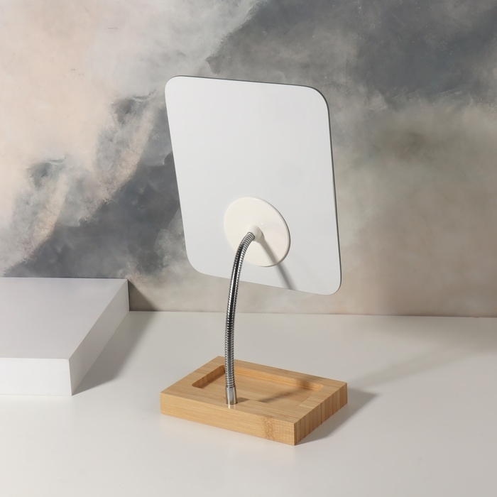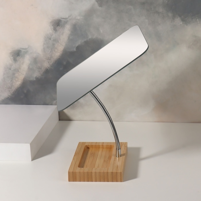 Подставка из качественного дерева станет удобным местом хранения ваших косметических принадлежностей и украшений. Благодаря гибкой ножке вы легко отрегулируете положение зеркала и расположите его под нужным углом. Аксессуар гармонично впишется в интерьер и станет его стильным дополнением.