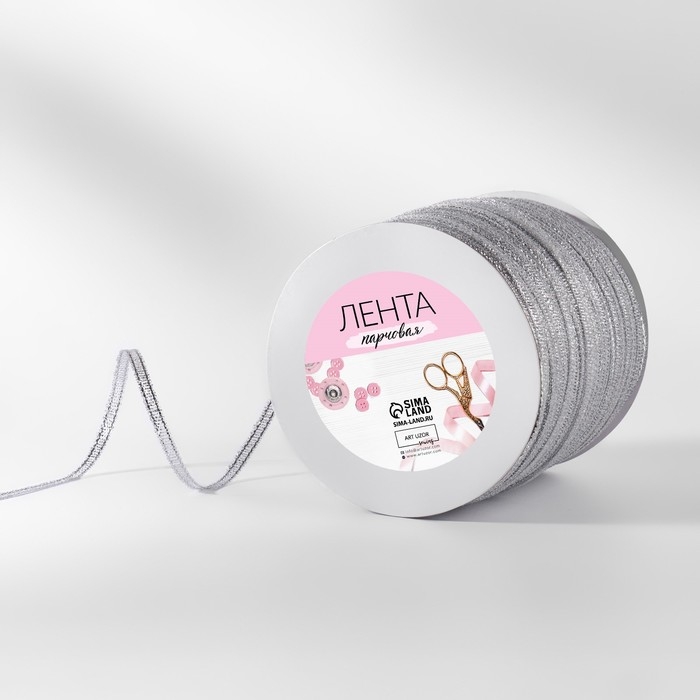 Лента парчовая, 6 мм, 500 ± 1 м, цвет серебряный