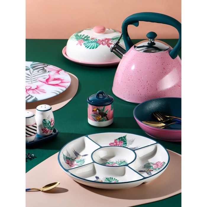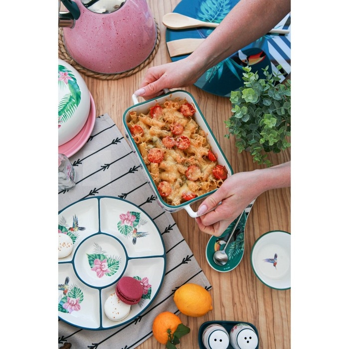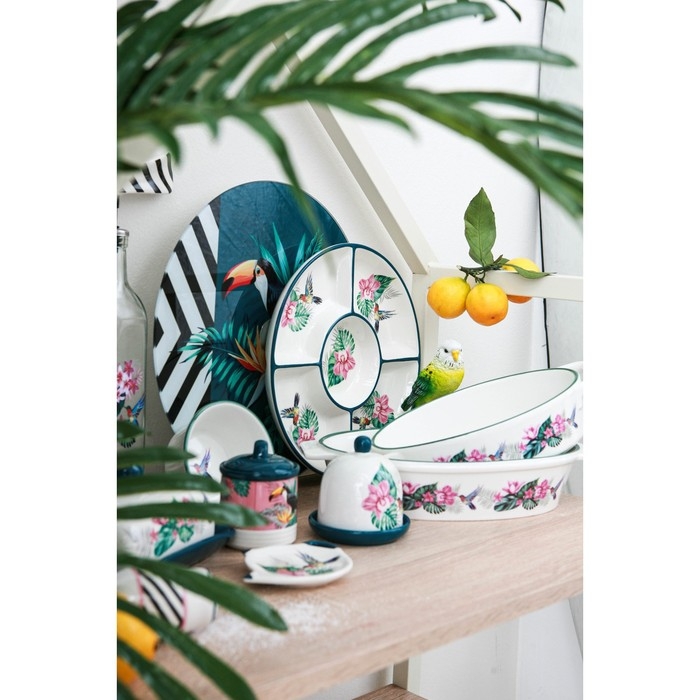 Посуда серии «Тропики» от торговой марки Доляна изготовлена из качественного доломита. Оригинальный и яркий дизайн изделий добавит изюминку на вашу кухню. Посуда в таком исполнении станет настоящим украшением для интерьера и декором для праздничной сервировки стола!