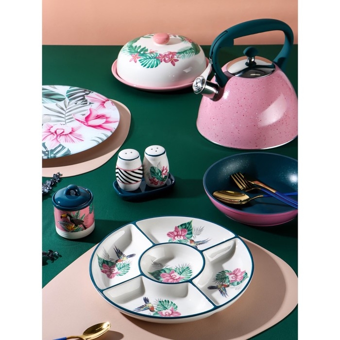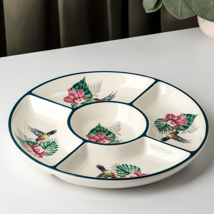 Менажница 5 ячеек Доляна «Тропики», d=26 см, цвет белый