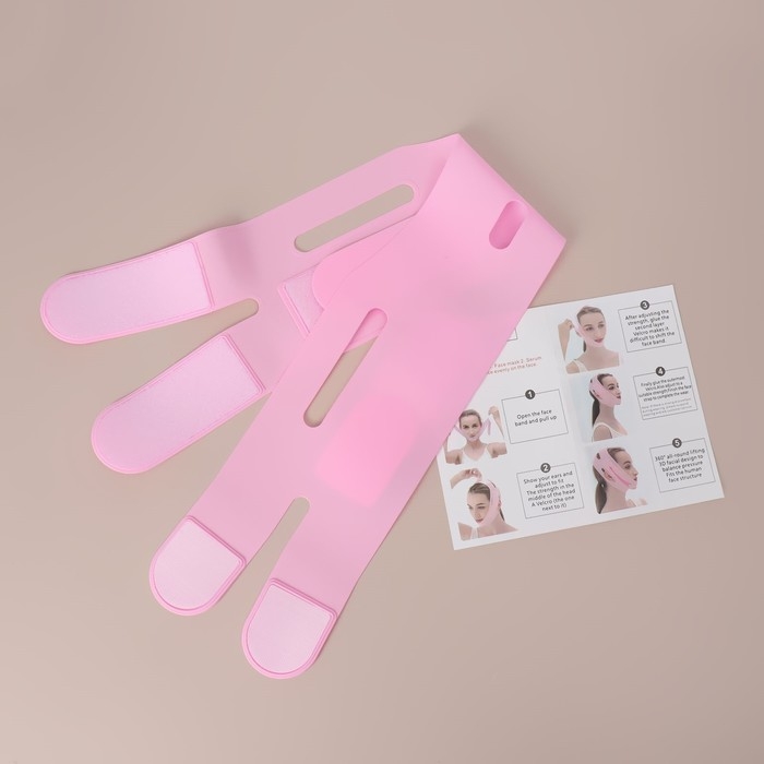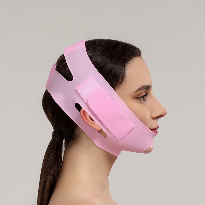 Маска для коррекции овала лица, на липучке, 60,5 × 10 см, в коробке, цвет розовый