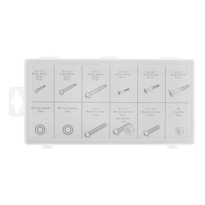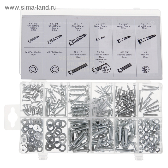 Набор крепежный: гайки, шайбы, болты, шурупы, винты, 347 шт