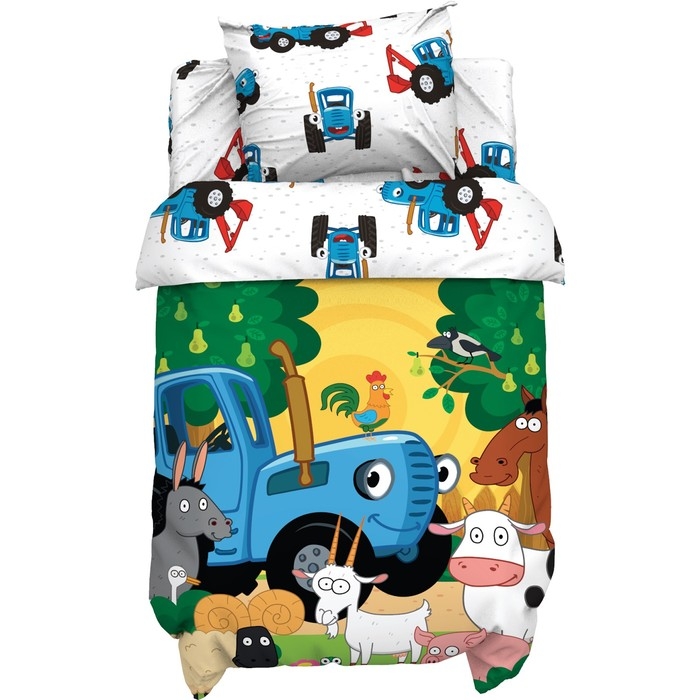 Постельное бельё Синий трактор «Веселая ферма» 112х147 см, 60х120+20 см, 40х60 см, 100% хл, поплин 125г/м
