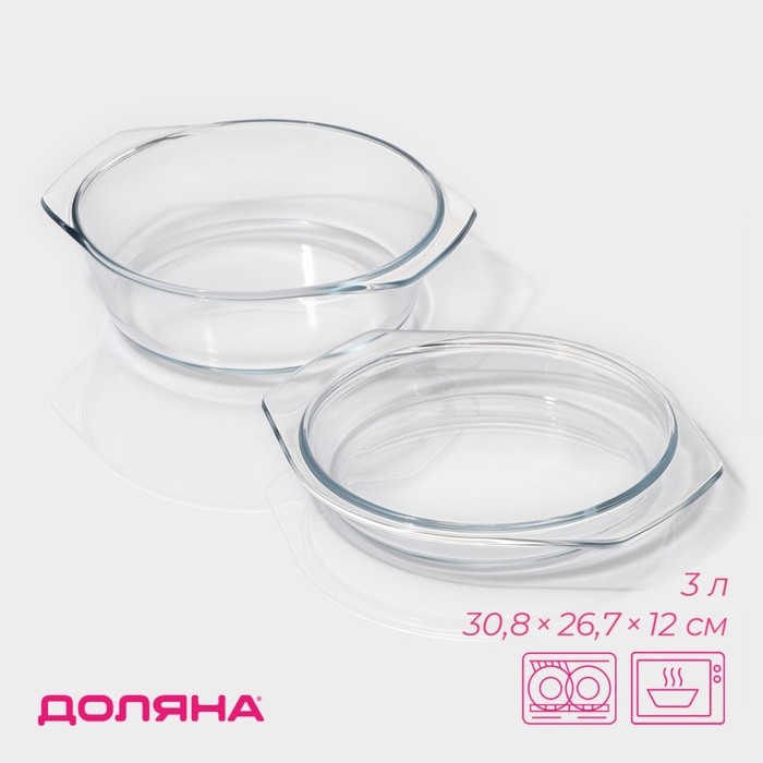 Кастрюля из жаропрочного стекла для запекания Доляна «Фуэго», 3 л, 30,8×26,7×12 см, с крышкой