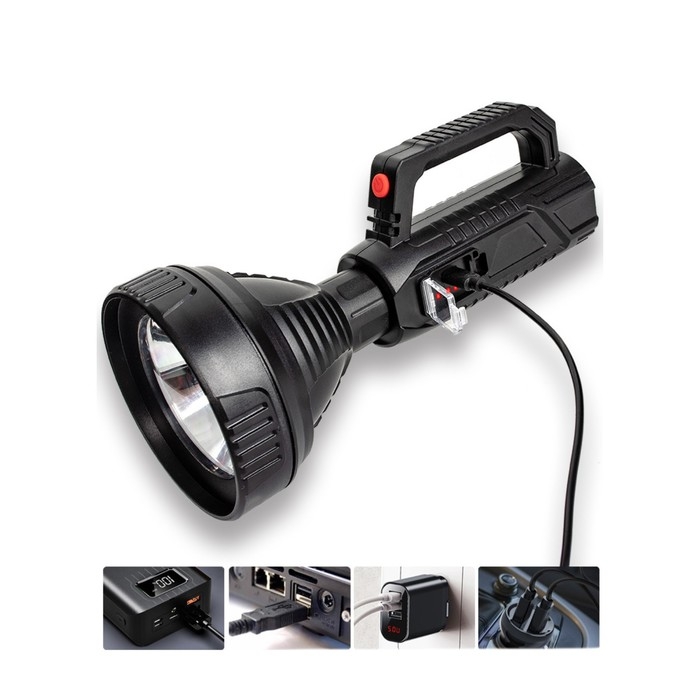 Фонарь светодиодный аккумуляторный ручной, 4000 мАч, 25 Вт, 1500 лм, LED, USB, IP45
