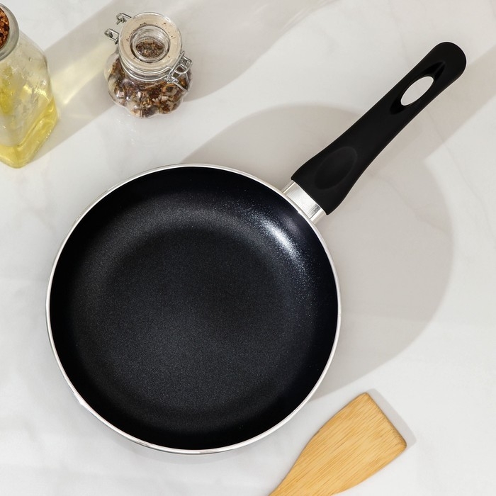 Сковорода Доляна Basic, d=20 см, пластиковая ручка, антипригарное покрытие, индукция, цвет чёрный