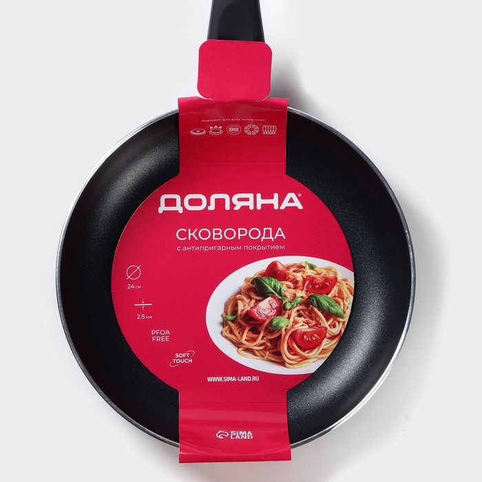Сковорода Доляна Basic, d=24 см, пластиковая ручка, антипригарное покрытие, индукция, цвет чёрный