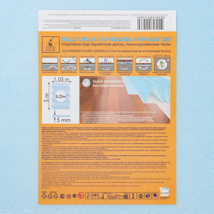 Подложка-гармошка под ламинат, синяя, 5 мм/1050х250х5/5,25 м2