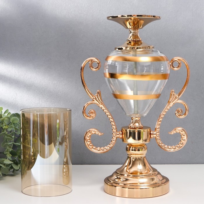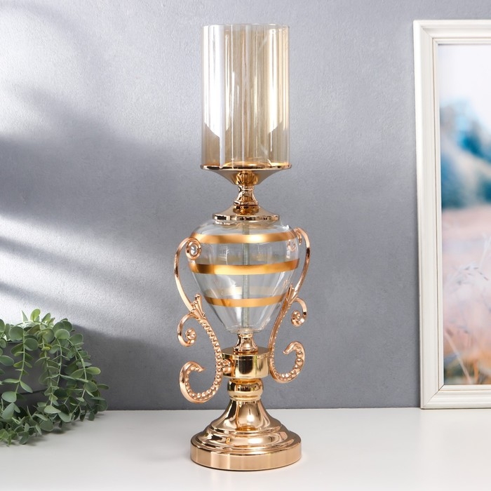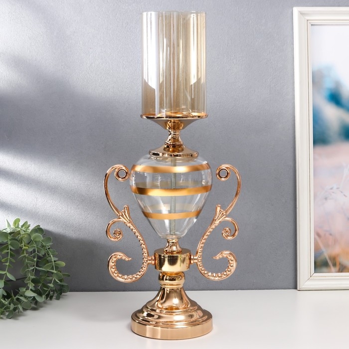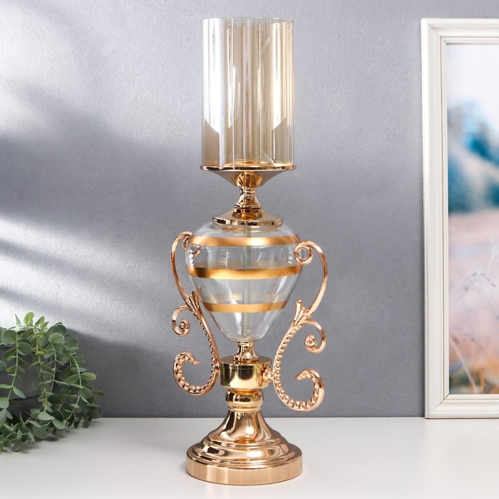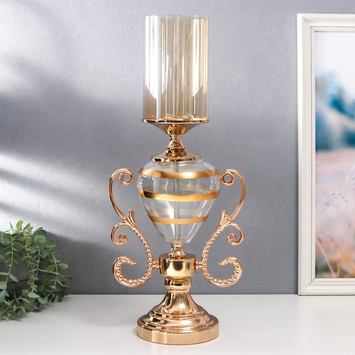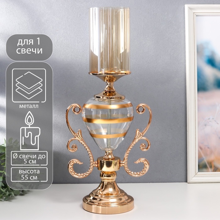 Подсвечник металл, стекло на 1 свечу "Изящный кубок" золото 55х14х23 см