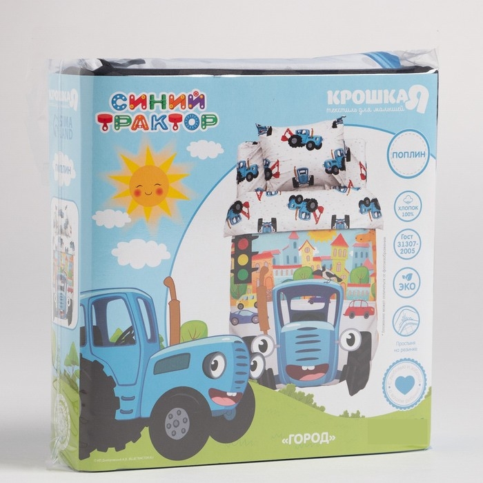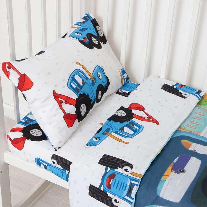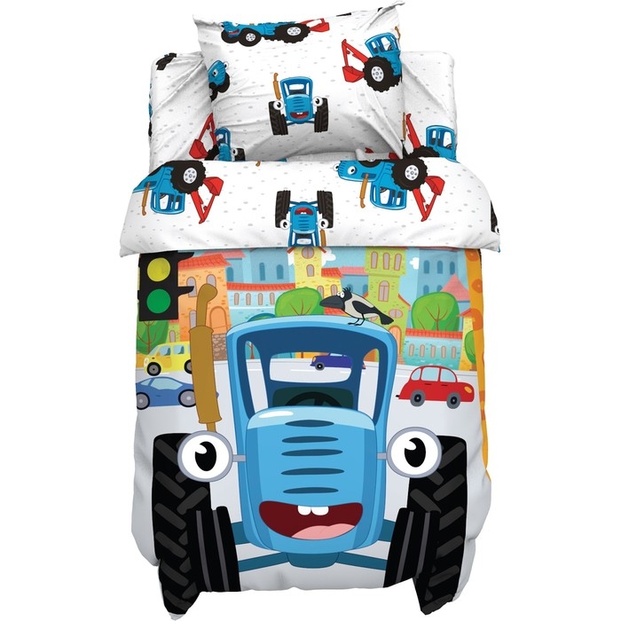 Постельное бельё Синий трактор «Город» 112х147 см, 60х120+20 см, 40х60 см, 100% хлопок, поплин 125г/м2