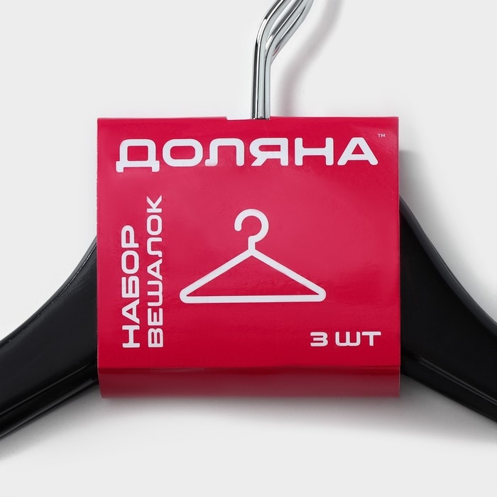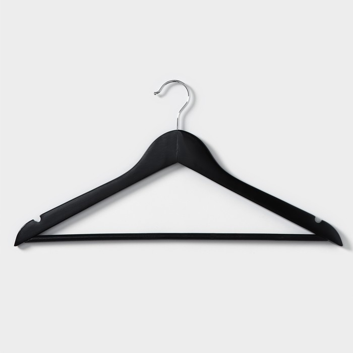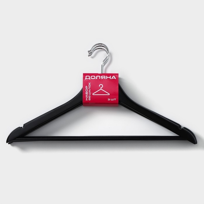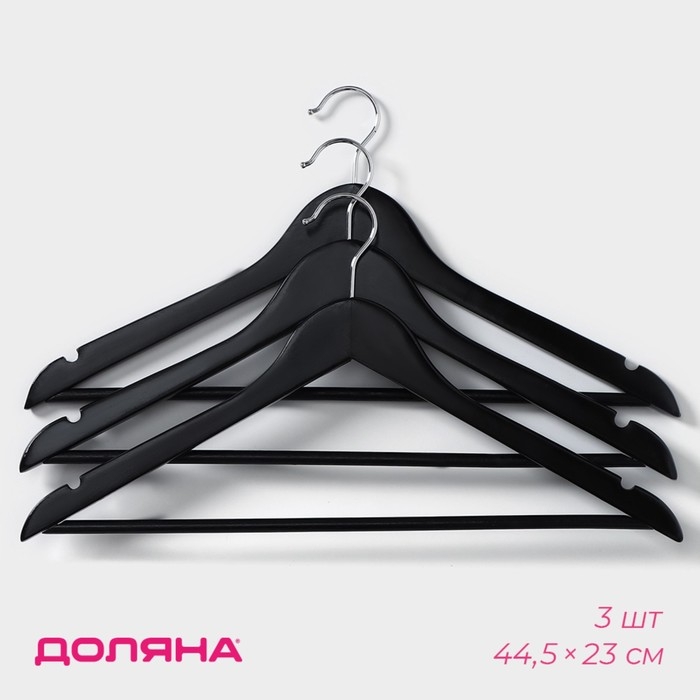 Плечики - вешалки для одежды Доляна, 44,5х23 см, 3 шт, с перекладиной, широкие плечики, деревянные сорт B, цвет чёрный