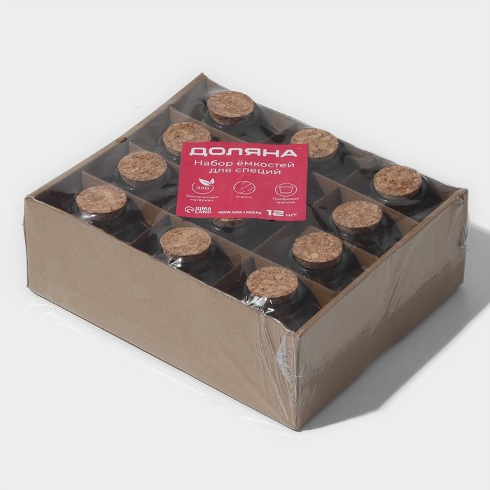 Набор стеклянных баночек для сыпучих продуктов с пробковой крышкой Доляна «Парфе. Сердце», 85 мл, 6,8×7,5 см, 12 шт