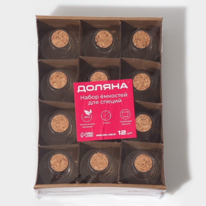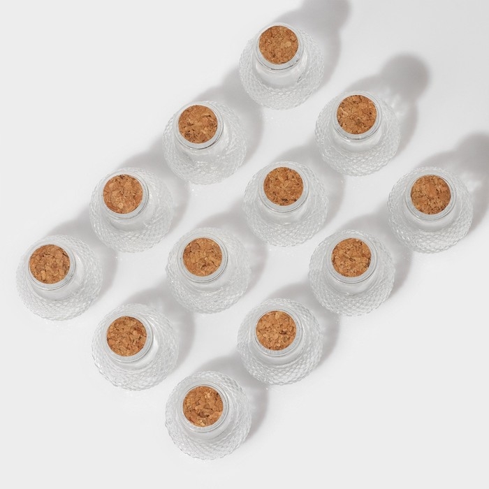 Набор баночек стеклянных для специй с пробковой крышкой Доляна «Парфе», 50 мл, 5,5×5,5×7 см, 12 шт