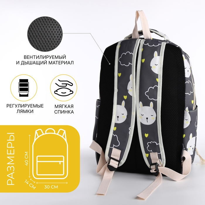 Рюкзак школьный на молнии, сумка, косметичка, цвет серый