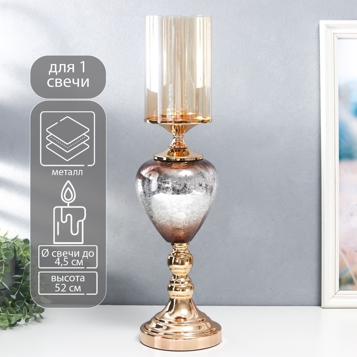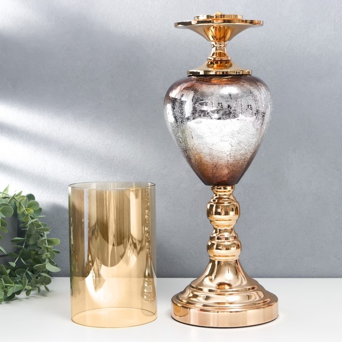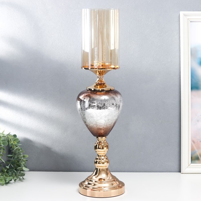 Подсвечник металл, стекло на 1 свечу "Мозаика" золото 52х15х15 см