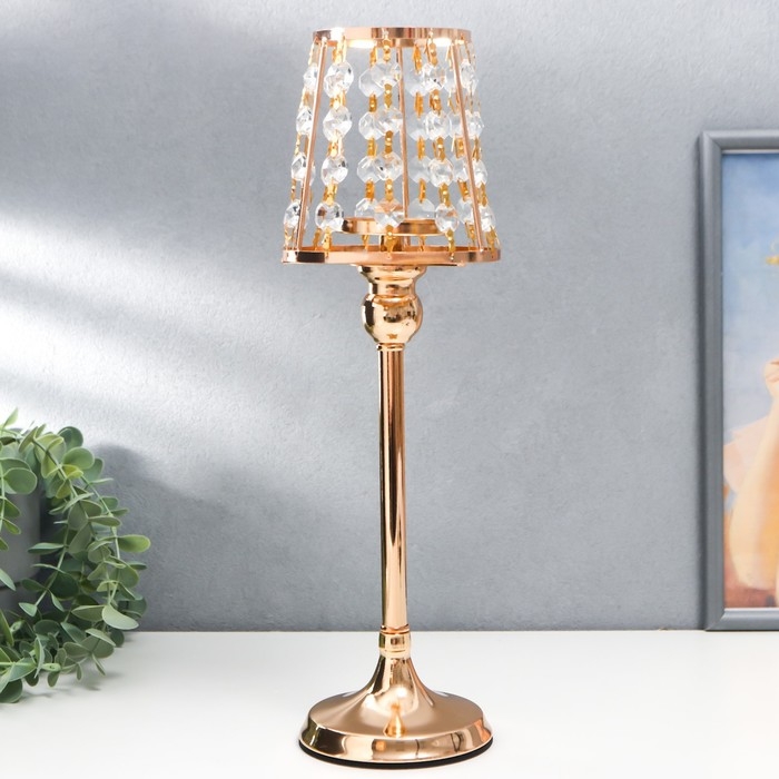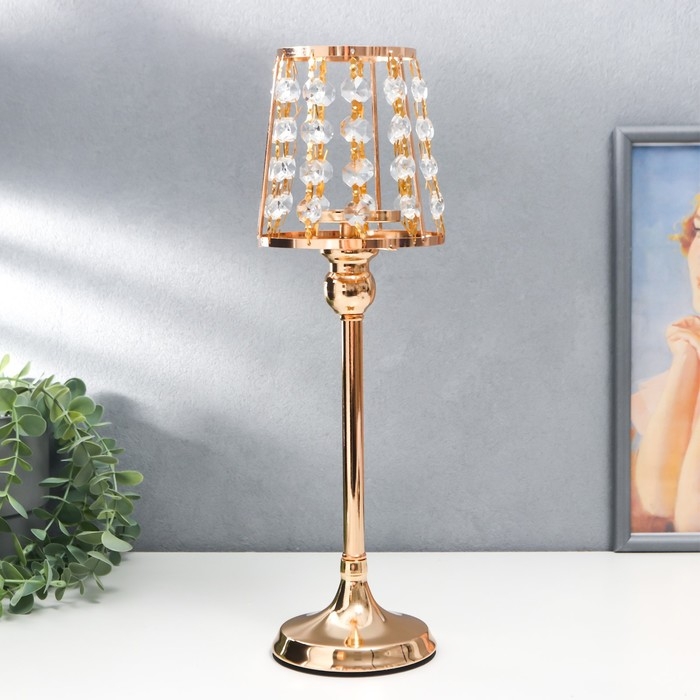 Подсвечник металл на 1 свечу "Кристаллы - Лампа" золото 36х13х13 см