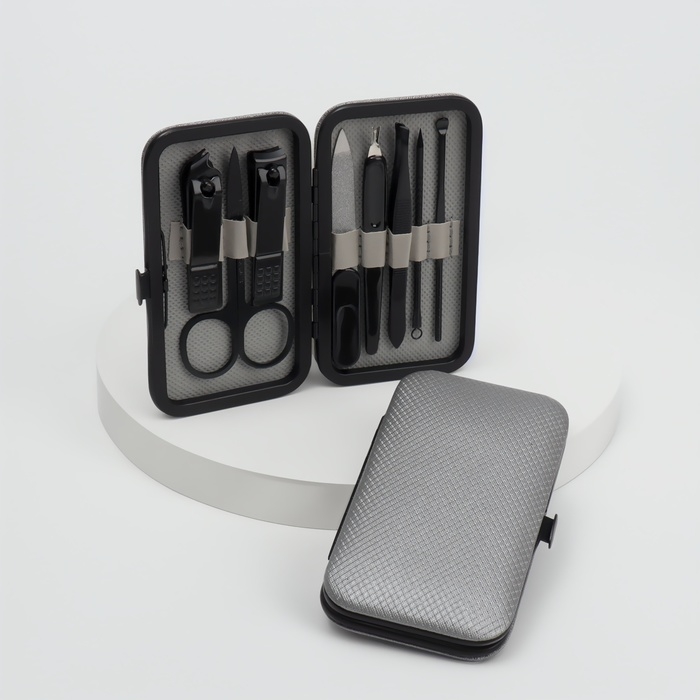 Набор маникюрный, 7 предметов, в футляре, цвет чёрный