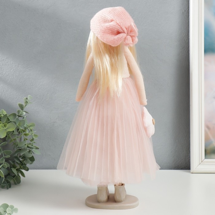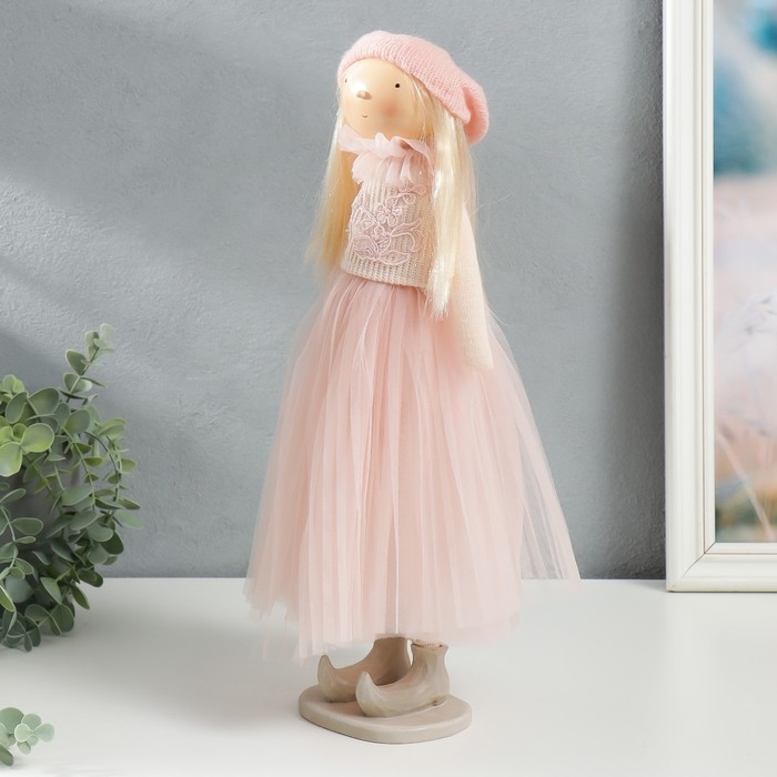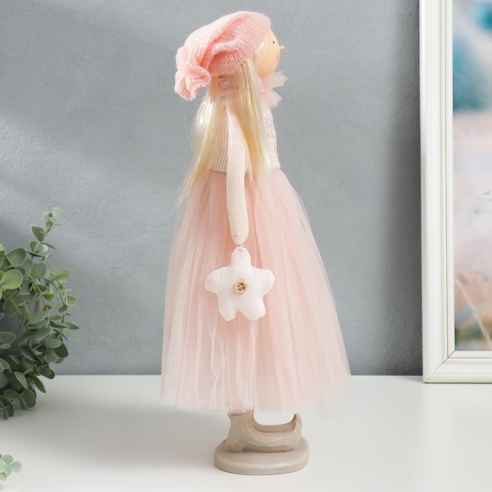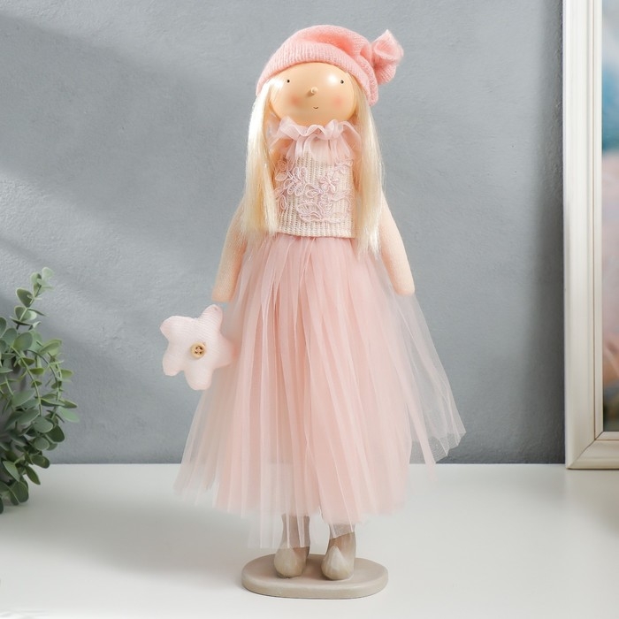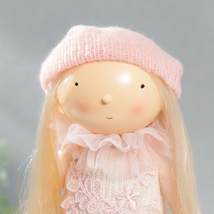 Кукла интерьерная "Малышка в розовом, с цветком, с длинными волосами" 41,5х14,5х16 см