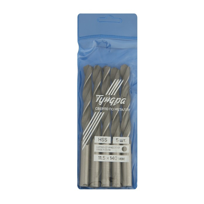 Сверло по металлу ТУНДРА, HSS, цилиндрический хвостовик, 11.5 x 140 мм,5 шт.