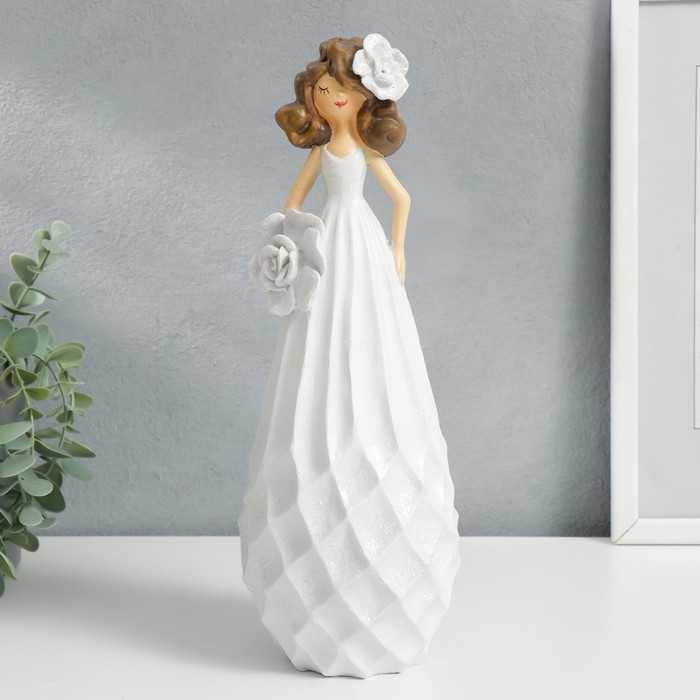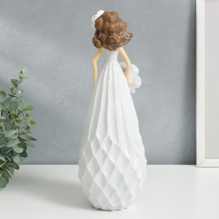 Сувенир полистоун "Малышка с цветком в волосах, в белом сарафане, с цветком" 30х11,5х11 см