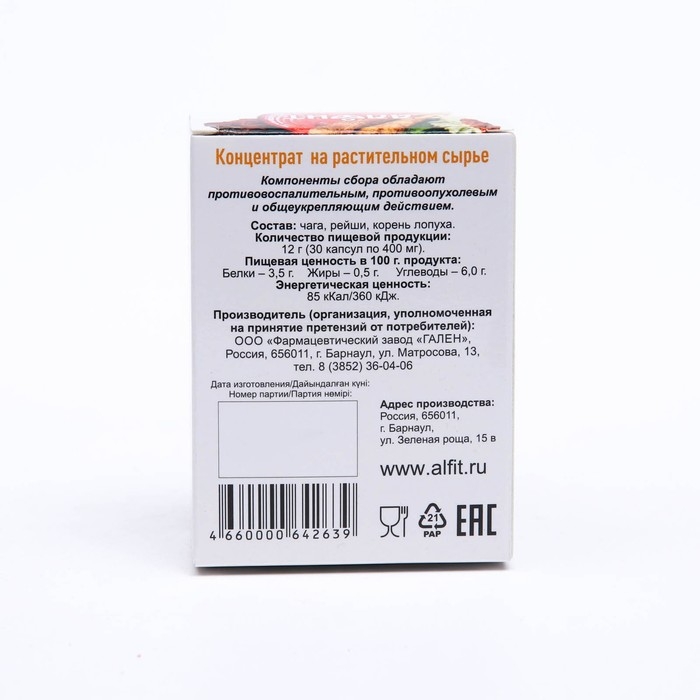 Чага и рейши с корнем лопуха Алфит, 30 капсул по 400 мг