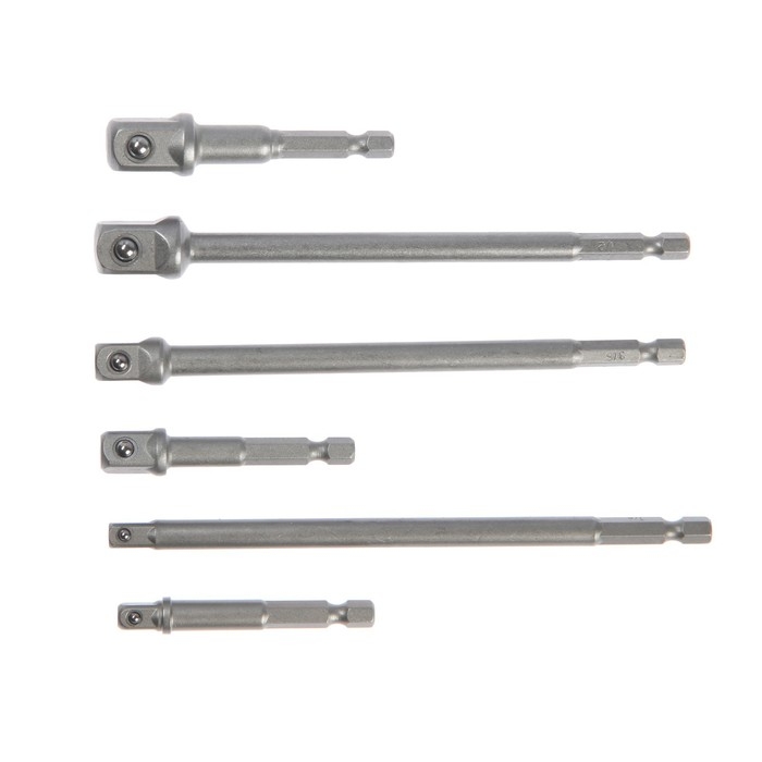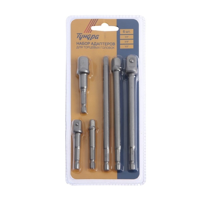 Набор адаптеров для торцевых головок ТУНДРА, под квадрат 1/4" 3/8" 1/2", 65 и 150 мм, 6 шт.