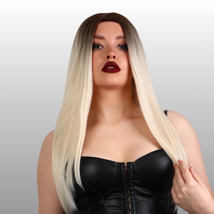 Парик искусственный, имитация кожи, 60 см, 160 гр, цвет омбре русый/блонд
