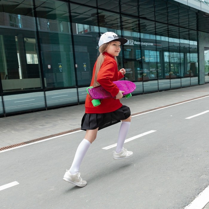 Компактный и манёвренный пенниборд — отличный выбор для юных начинающих скейтбордистов. Предназначен для катания по городским улицам. Дека с ребристой поверхностью обеспечивает хорошее сцепление с подошвой обуви и не позволяет ногам скользить по доске.