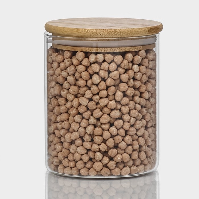 Банка стеклянная для хранения сыпучих продуктов «Эко», 700 мл, 10×12,5 см, с бамбуковой крышкой