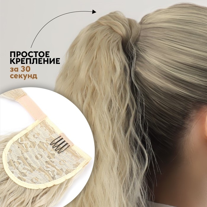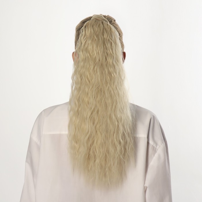 Хвост накладной, волнистый волос, на резинке, 60 см, 100 гр, цвет холодный блонд(#SHT88В)