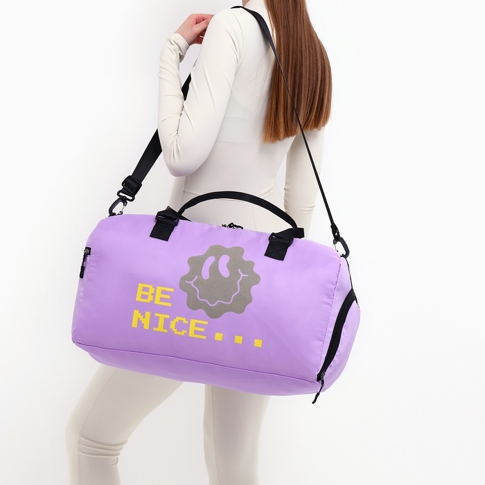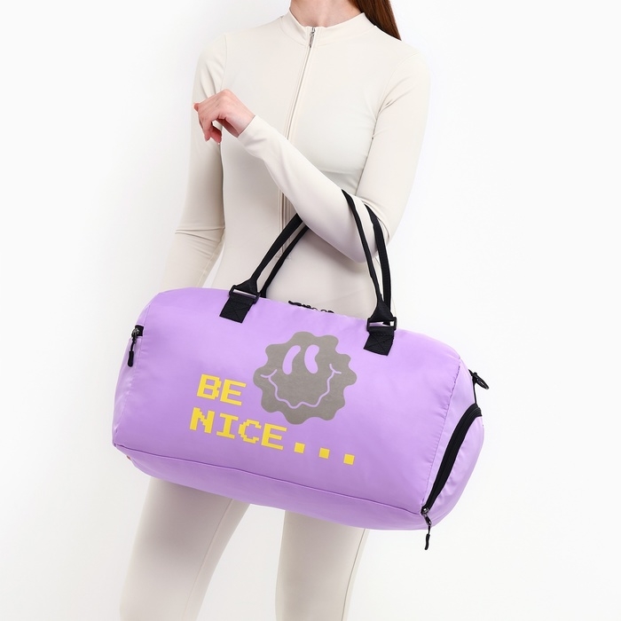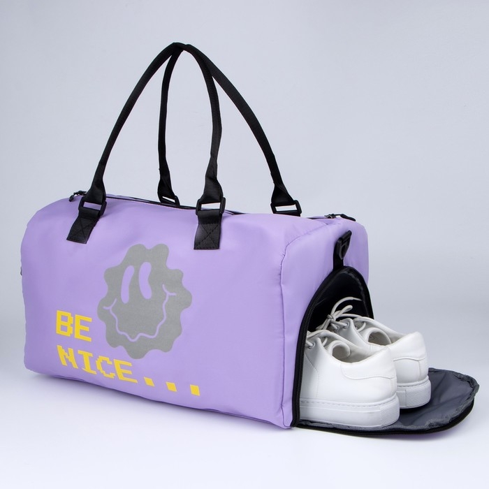 Сумка женская спортивная BE NICE на молнии, отдел из ПВХ, отдел для обуви, наружный карман, цвет сиреневый