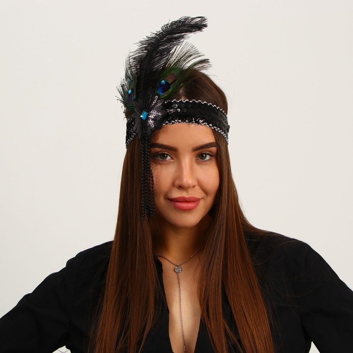 Новогодняя повязка на голову с пером , цвет чёрный, на новый год