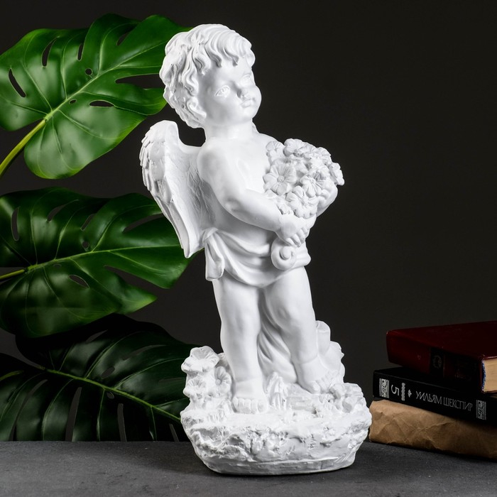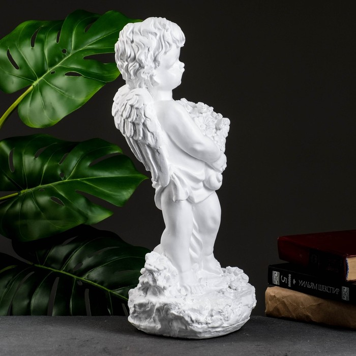 Фигура "Ангел с цветами" большой белый 20х19х42см