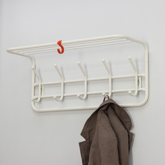 Вешалка настенная с полкой, 60×22×26,5 см, цвет белый