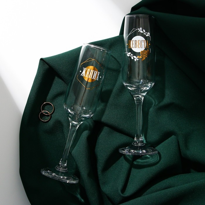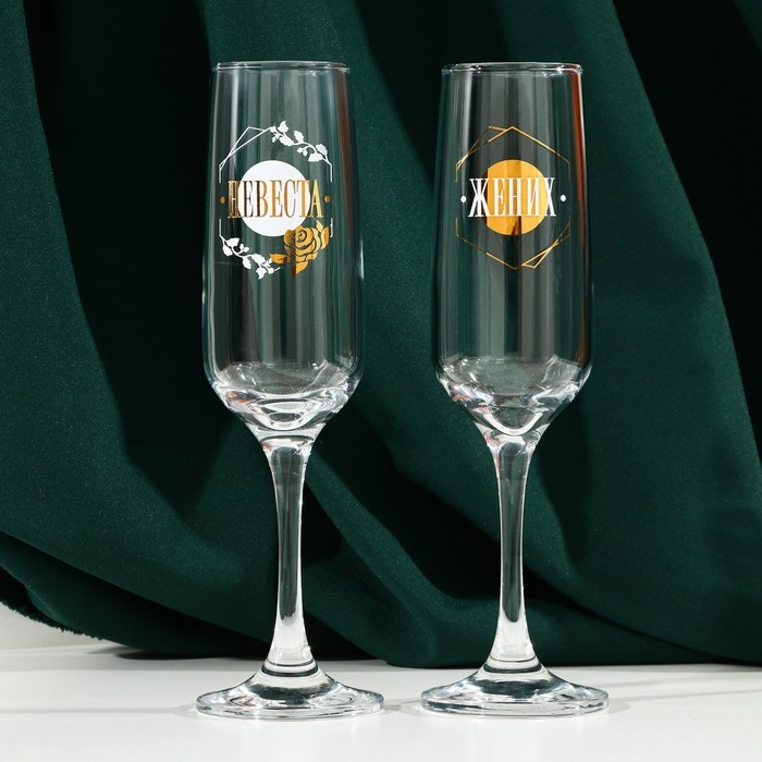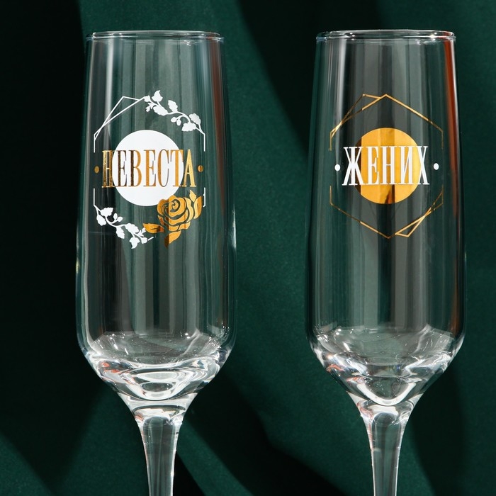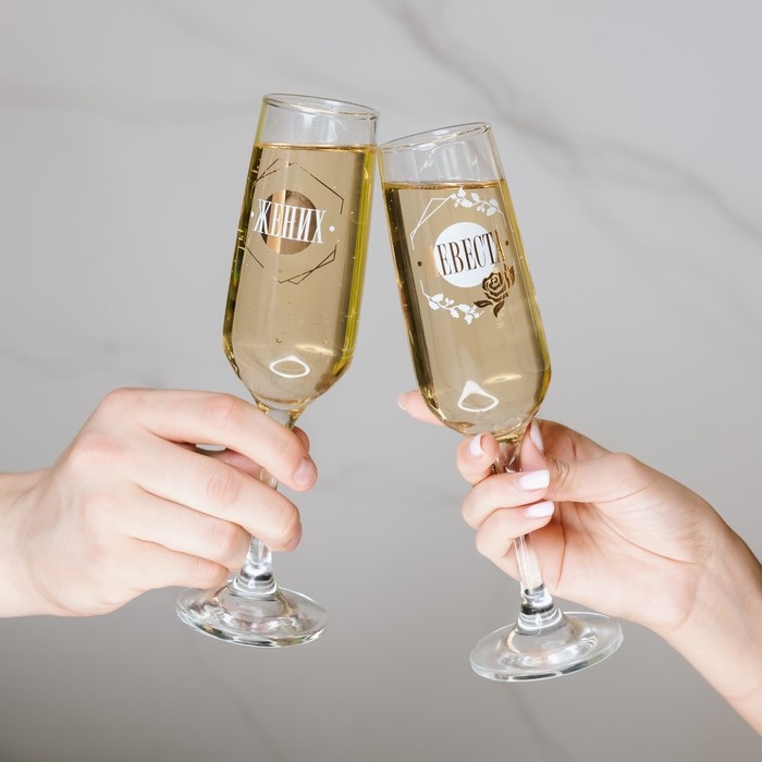 Набор бокалов для шампанского «Жених и невеста», 2 штуки, 200 мл, тип нанесения рисунка: деколь