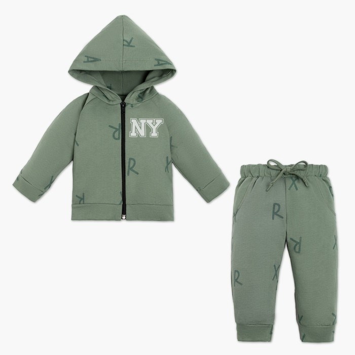 Комплект: худи и брюки Крошка Я "NY", рост 68-74 см, цвет хаки