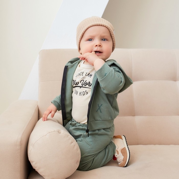 Комплект: худи и брюки Крошка Я "NY", рост 86-92 см, цвет хаки