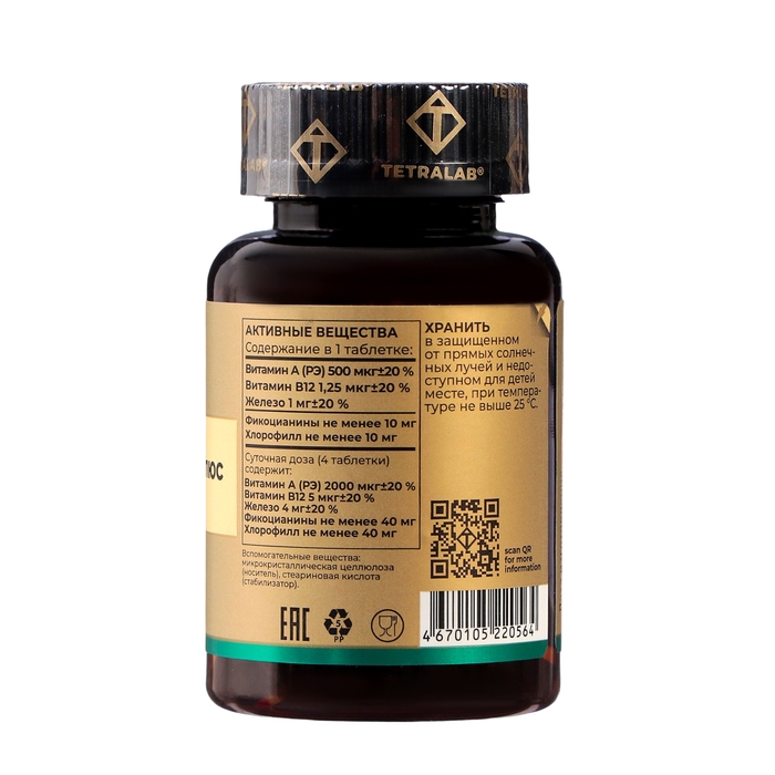 Назначение: рекомендуется в качестве дополнительного источника витаминов А и В12, железа, источника фикоцианинов и хлорофилла.