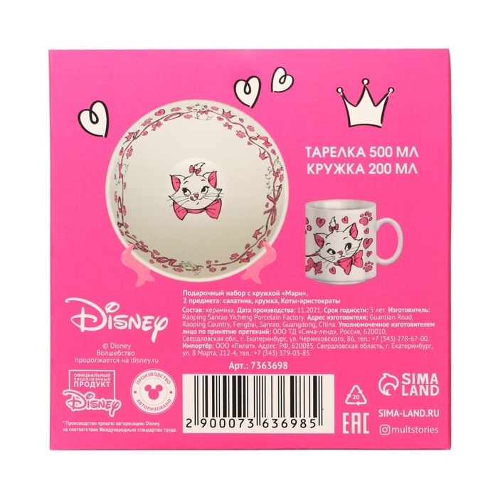 Набор детской посуды, 2 предмета: салатник, кружка "Кошечка Мари", Коты Аристократы