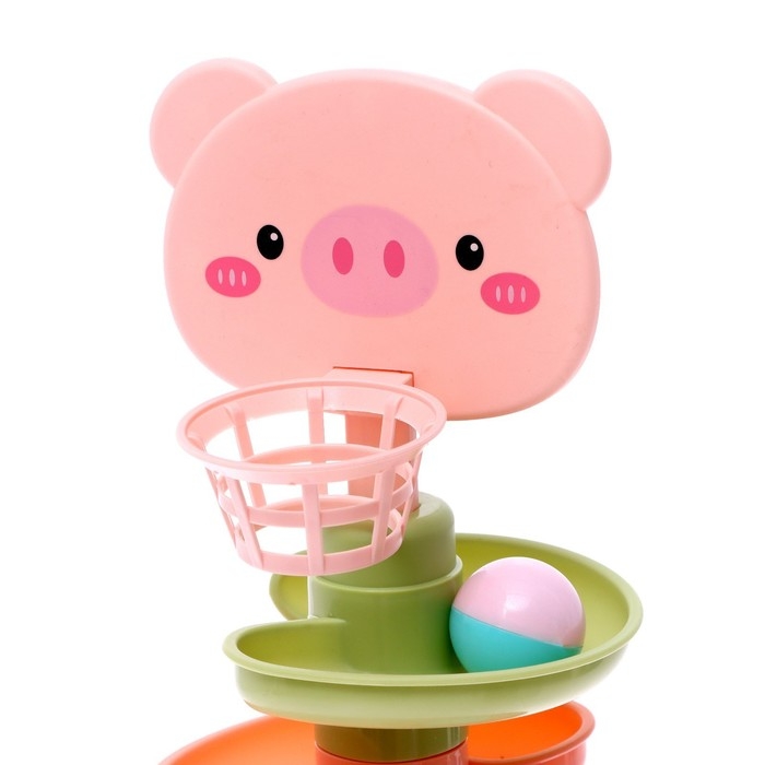 Малыш будет бросать разноцветные шарики в корзинку, и следить, как они скатываются с горки по спирали.