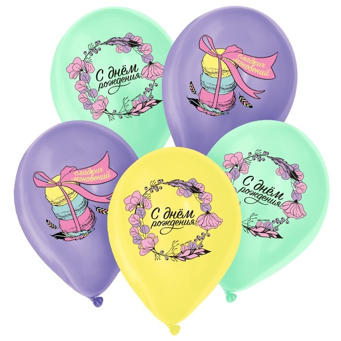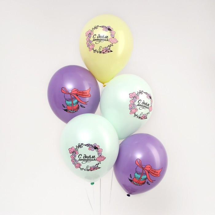 Воздушный шар латексный 12" «С Днём Рождения», нежность, 25 шт.