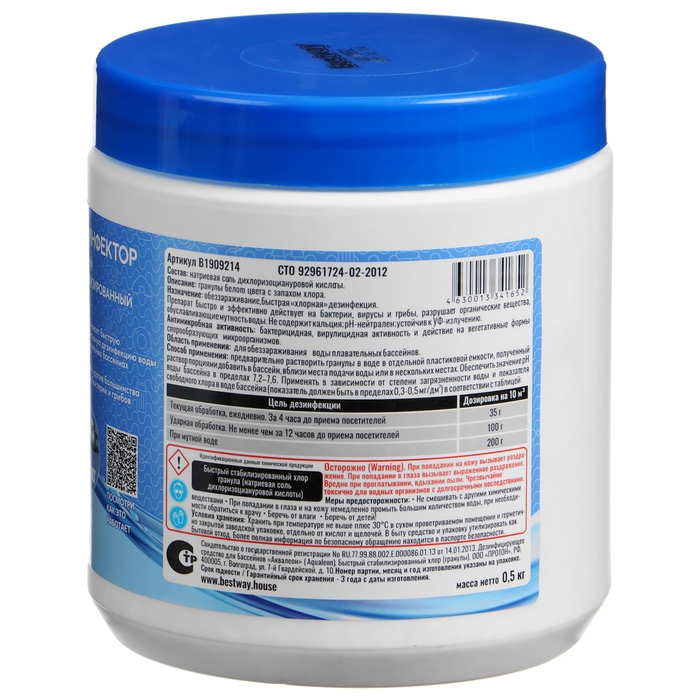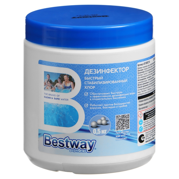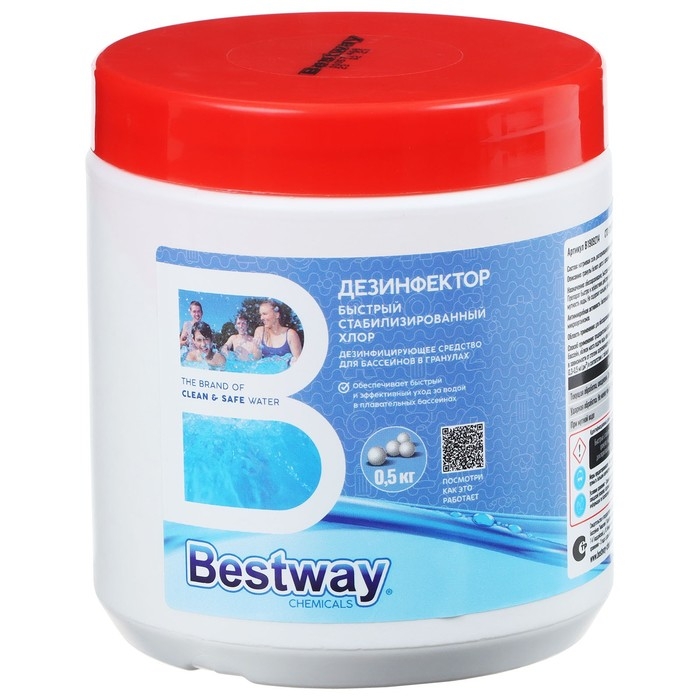Дезинфектор Bestway быстро стабилизированный хлор в гранулах обеззараживает и дезинфицирует воду бассейна. Препарат стремительно и эффективно действует на бактерии, вирусы и грибы, разрушает органические вещества, обуславливающие мутность воды. Не содержит кальция, рН-нейтрален, устойчив к УФ-излучению.
