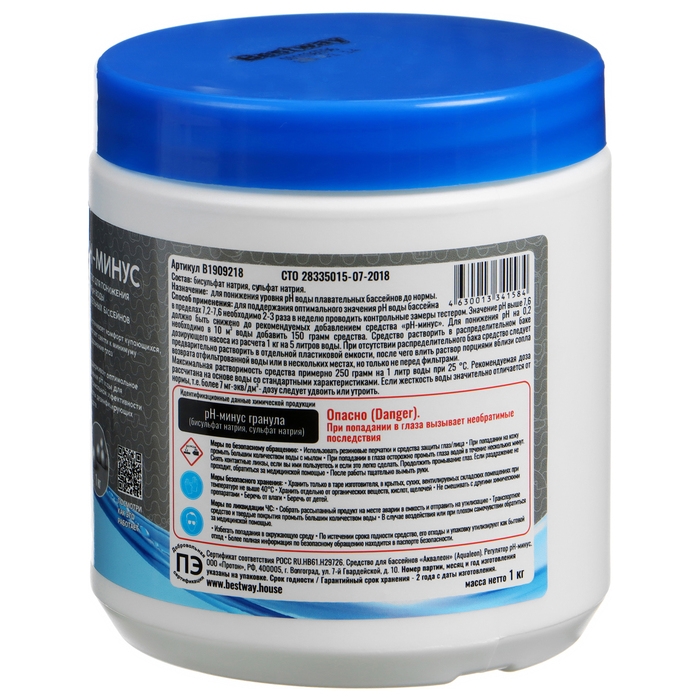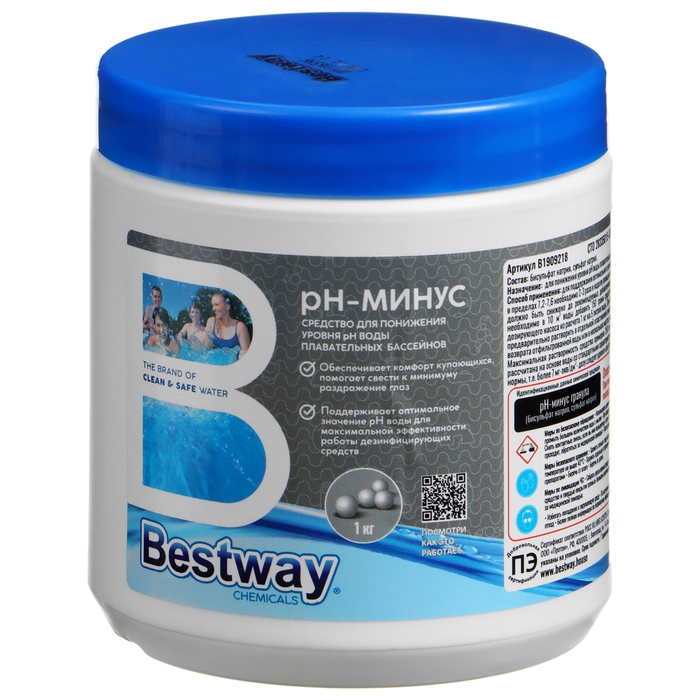 Средство рН-минус Bestway в гранулах предназначено для понижения уровня рН воды в бассейне до нормы.