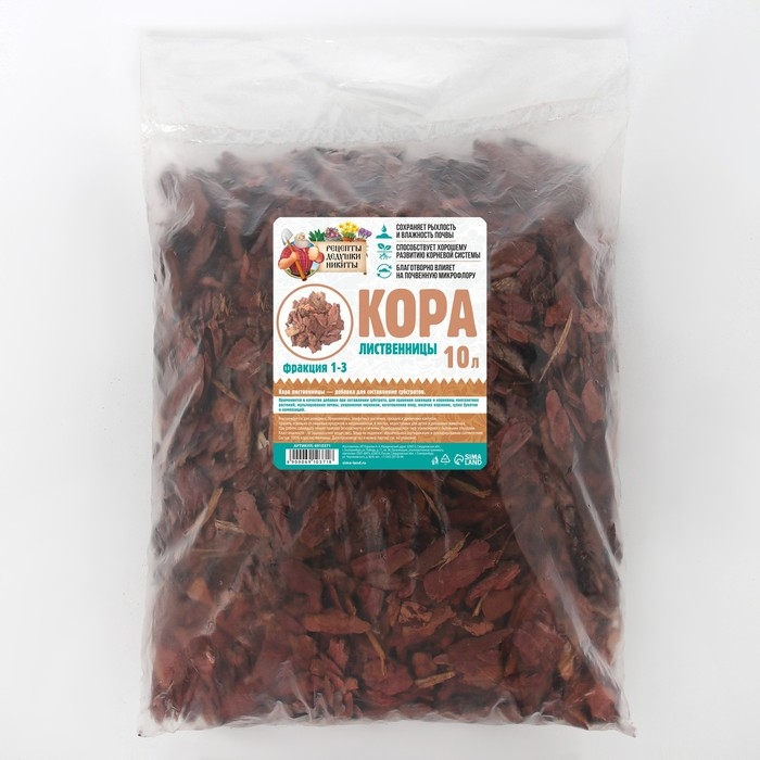 В заключение, кора лиственницы торговой марки ""Рецепты Дедушки Никиты"" является натуральным и эффективным субстратом для мульчирования почвы. Ее использование позволяет улучшить почву, защитить растения и создать здоровую экосистему в саду или на участке.