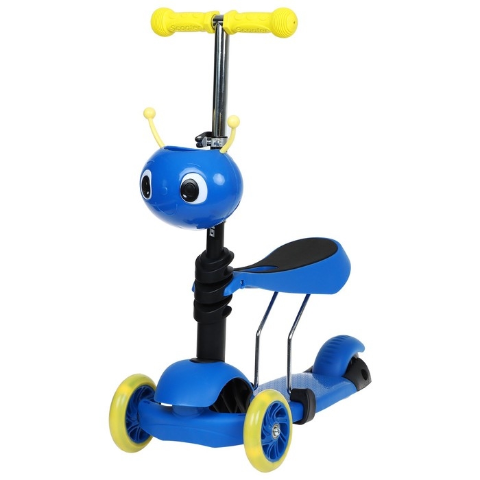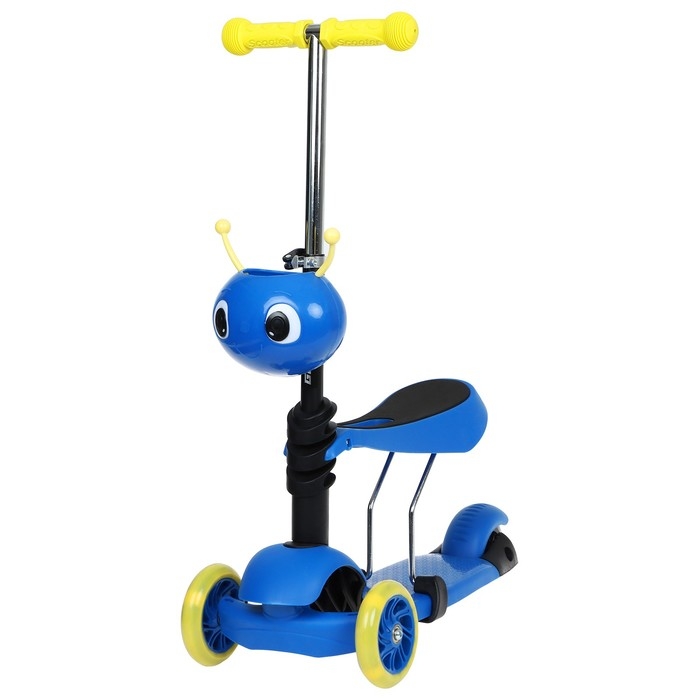 При установленном сиденье – это беговел, благодаря такой функции ребёнок развивает навыки координации и укрепляет мышцы ног. Если сиденье снято – это полноценный самокат, который позволяет прорабатывать мышцы верхних, нижних конечностей, мышц спины и брюшной полости.