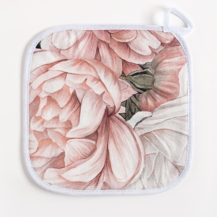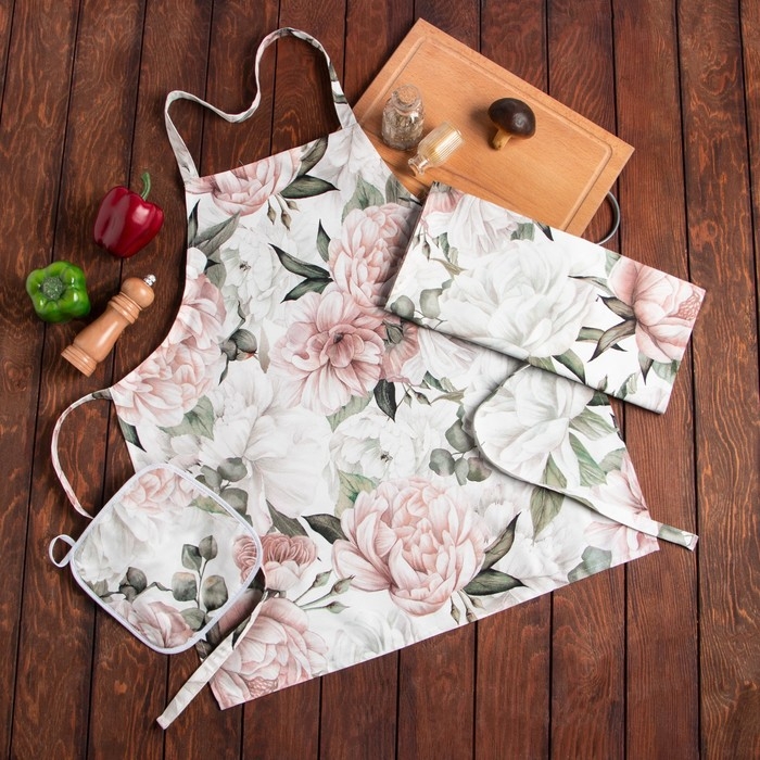 Кухонный набор "Этель" Пионы полотенце 40х73 см, прихватка 19х19 см, фартук 60х65+/-5см