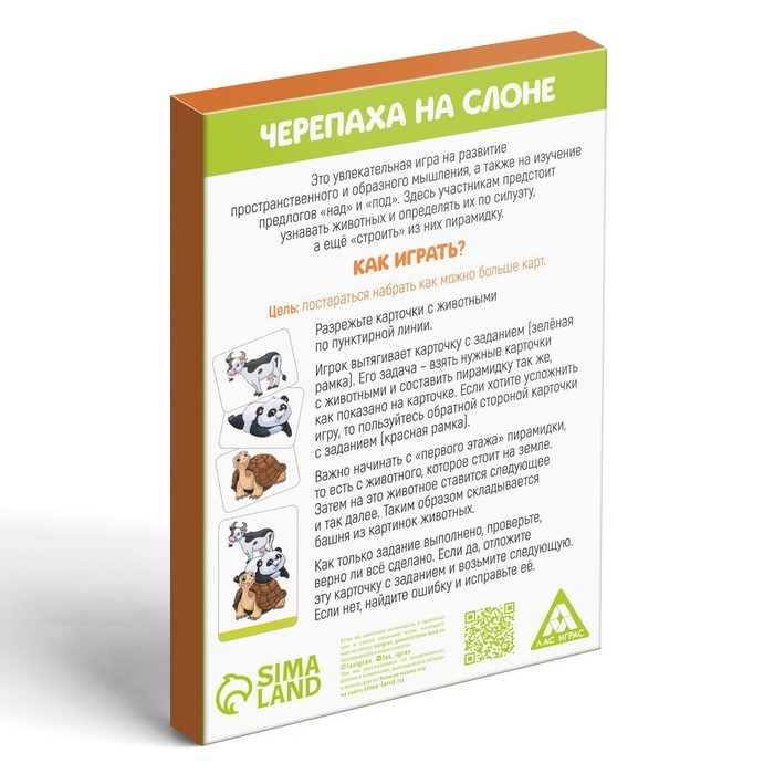 - «Черепаха на слоне» — игра на развитие пространственного мышления и изучение предлогов «над» и «под». Узнавайте животных по силуэту и «стройте» из них пирамидку.