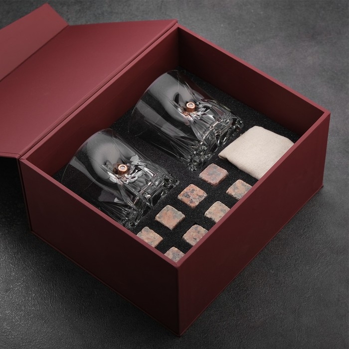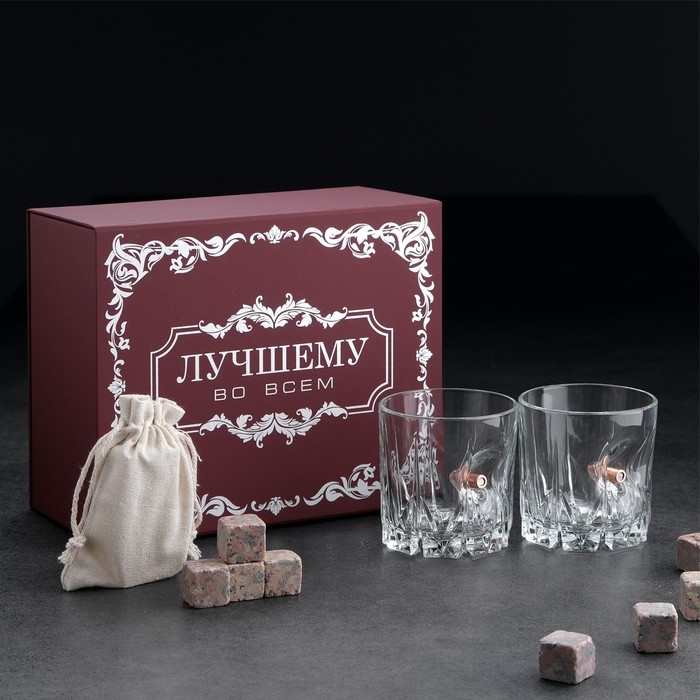 Набор "Непробиваемый. Лучшему", красный, 2 стакана 200 мл, 8 камней для виски