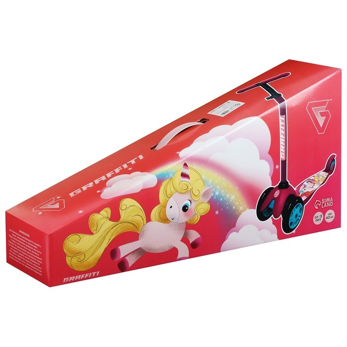 Самокат GRAFFITI «Единорожки», колёса PU 110/75 мм, ABEC 7, цвет розовый